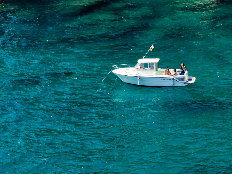 Здесь можно хоть весь день провести, сидя на катерке, стоящем в заливе.