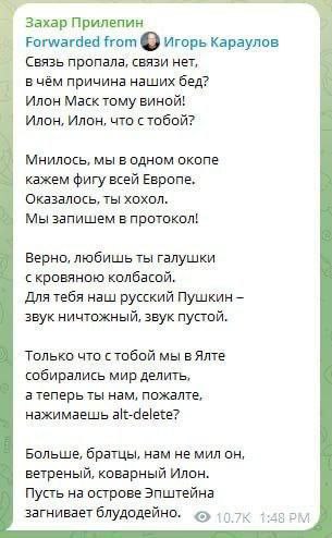 Среди реакций зетников есть такое, что типа подсадили нас на Старлинк, а теперь вдруг забрали. Пришел трындец, откуда не ждали, короче.