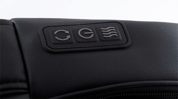 У массажера три управляющих кнопки: кнопка питания (автоматически выключает массажер через 20 минут использования), кнопка включения прогрева (для увеличения эффективности массажа) и кнопка включения реверсного движения массажного механизма.
