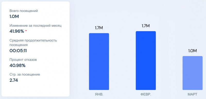 Сам посыл я обсуждать не буду. Но мне было интересно посмотреть на цифры Similarweb, который вообще-то сервис известный и его данным можно доверять, потому что он их получает от Аналитики Гугла.