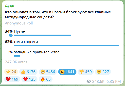 А тут аж 34% понимают, что первопричина социально-сетевого кризиса - плешивое хуйло, хотя сколько из них россиян, живущих в РФ - одному Дудю известно.