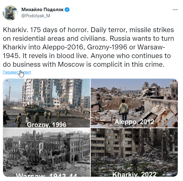Насколько я помню, этот толковый и четкий Подоляк не удосужился даже объяснить, как так получилось, что после его твита на нашем полигоне 35 человек погибло и 134 ранено.
