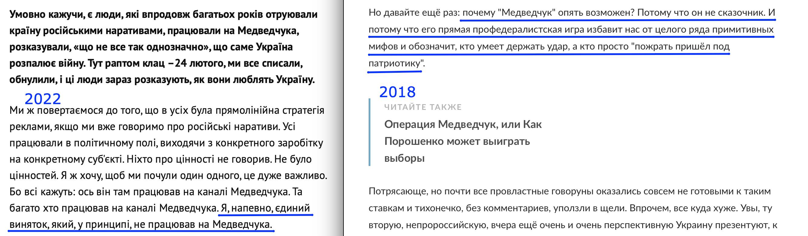 Перевод на русский левой части: "Я, наверное, единственное исключение, кто принципиально не работал на Медведчука".