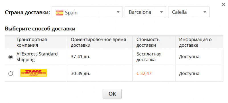 Прелестно, просто прелестно. Это варианты доставки с Ali. То есть можно за месяцок совершенно бесплатно (в реальности приезжает недели за две), а можно за месяцок заплатив 32 евро и еще, как обычно с DHL, конкретно попасть на таможню.