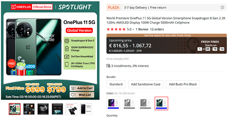 На сайте Aliexpress - мировая премьера глобальной версии смартфона OnePlus 11 5G.