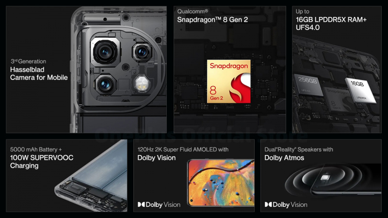 Qualcomm Snapdragon 8 Gen 2 | Камера 3-го поколения Hasselblad для мобильных устройств | До 16 ГБ LPDDR5X RAM+UFS4.0 | Аккумулятор 5000 мАч + 100 Вт SUPERVOOC зарядка | 120 Гц 2K Super Fluid AMOLED с Dolby Vision.