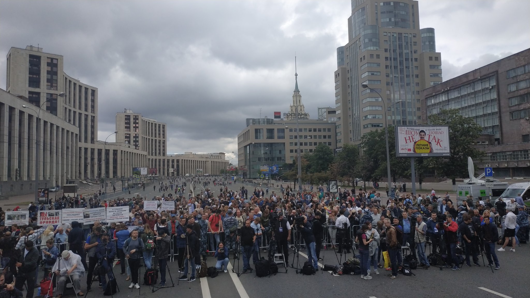 В Москве на Сахарова начался многотысячный митинг, организованный Екатериной Винокуровой из "Раша Тудей", Лесей Рябцевой из той же помойки, главредом "МК" Павлом Гусевым и председателем Союза журналистов Владимиром Соловьевым.