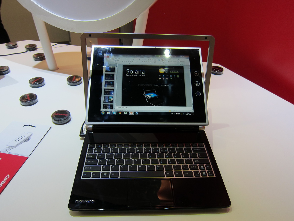 На стенде фирмы Novero был представлен забавный гаджет. На первый взгляд - это обычный ноутбук под Windows 7.
