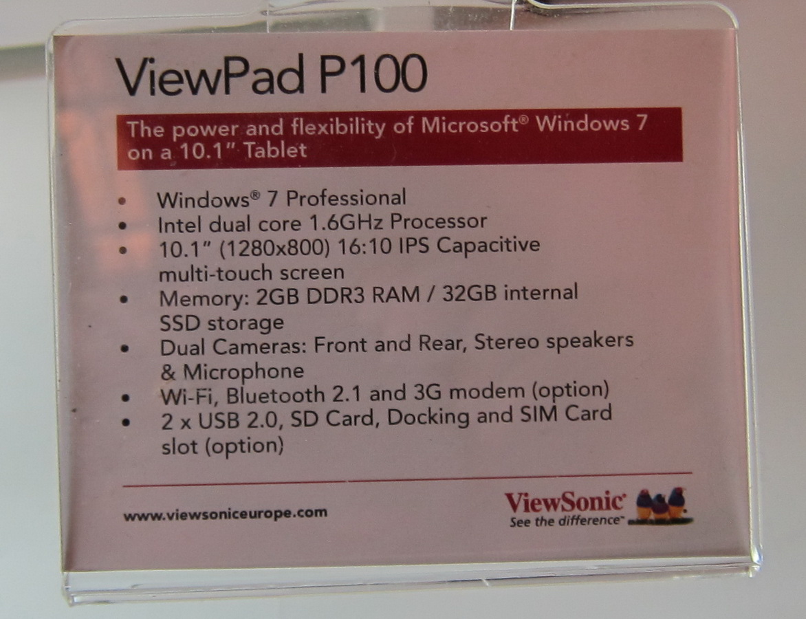 Модель ViewPad P100 - под Windows 7. Разрешение экрана - хорошее для планшета. Но тоже интересно посмотреть, сколько он проживет от аккумулятора.