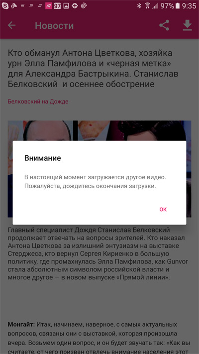 Но с "Дождем" этот номер не пройдет, у них же все платное, поэтому пользоваться можно только их собственным мобильным приложением. Ну, думаю, так это же, наверное, еще и лучше, ведь когда собственное приложение, оно же должно быть заточено под этот "Дождь", как кинжал настоящего джигита!