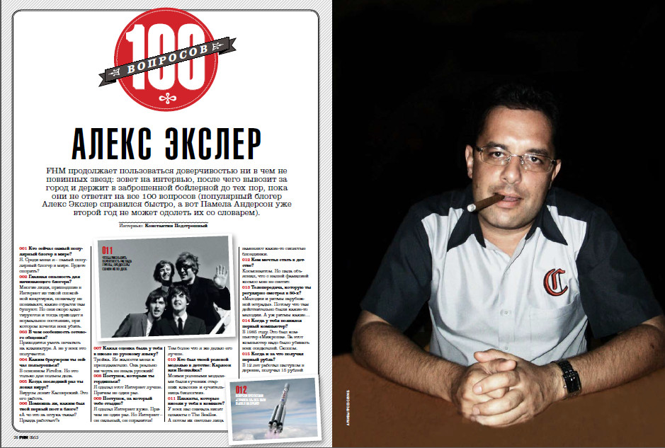 Вышел майский номер журнала FHM, в котором я отвечал на их сто вопросов. Вот PDF с ответами.
