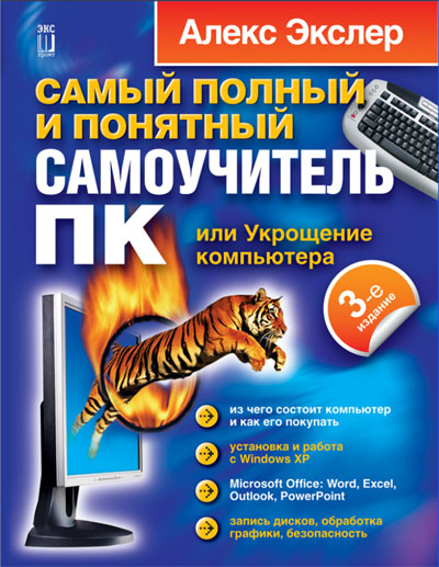 Определенная веха в издательских делах. Вчера сдал 3-е издание учебника "Самый полный и понятный самоучитель ПК, или Укрощение компьютера", сделанный уже моим собственным издательством "ЭКСпромт". Издательство "АСТ" будет его печатать и продавать. Должны напечатать достаточно быстро, потому что 2-е издание в продаже заканчивается, и они решили не делать допечатку, а быстрее выпустить третье. В нем сильно обновлена вся глава по железу, почти полностью переписана глава по прикладным программам, значительно расширена глава по Office 2003. Правда, учебник при этом вырос - 944 страницы формата 70х90 1/16. Дизайн мягкой обложки делал Антон Смирнов, выглядит обложка вот так: