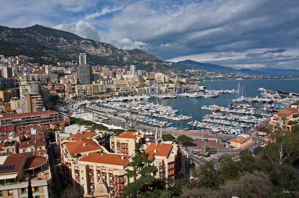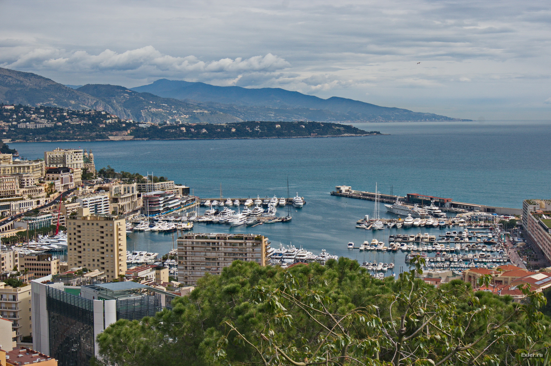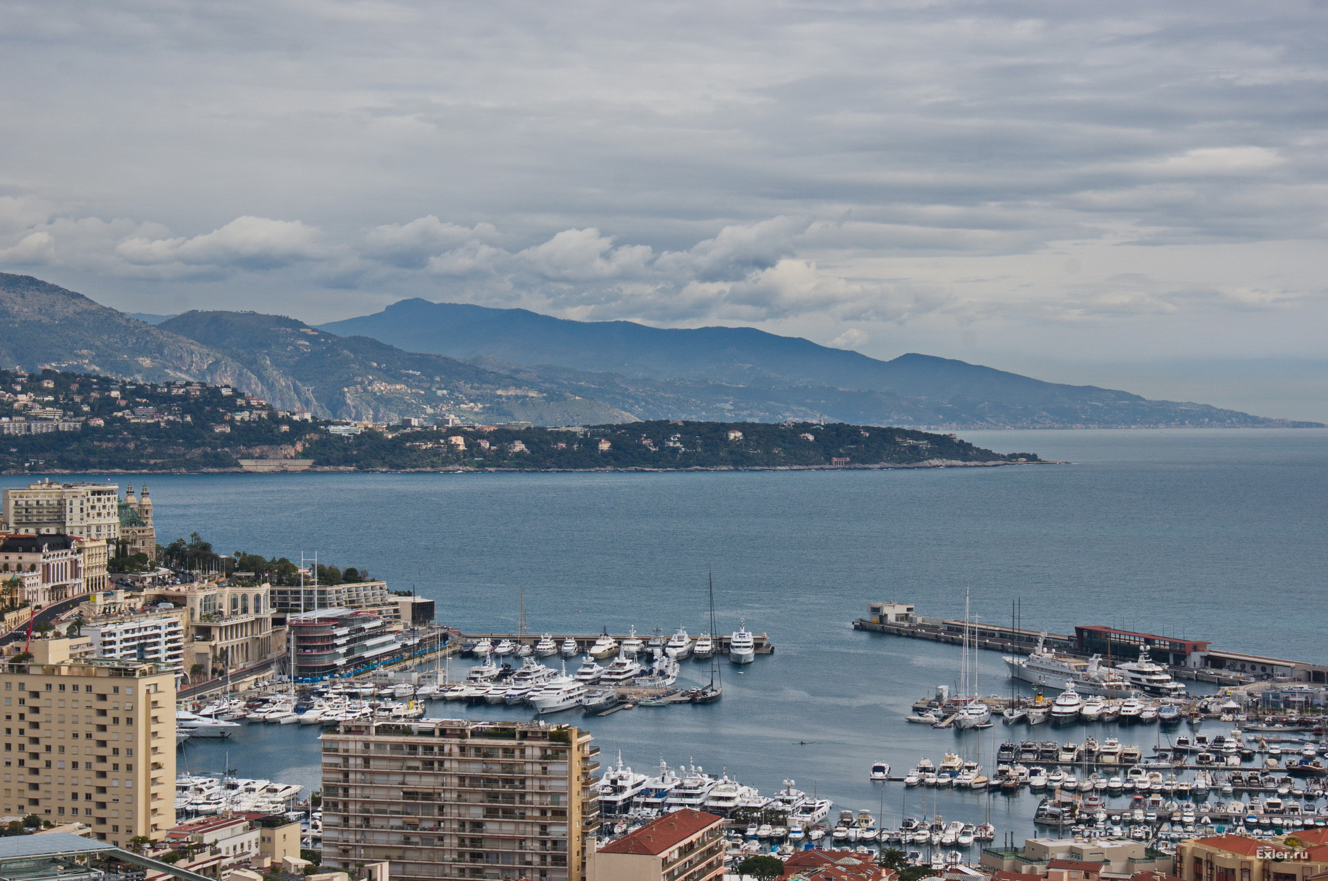 Это вид на знаменитую марину с яхтами и предгорную часть Монако.