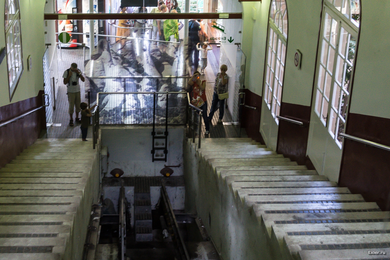 Ходят здесь два фуникулера, но рельсы проложены для одного: там на середине пути есть разъезд.