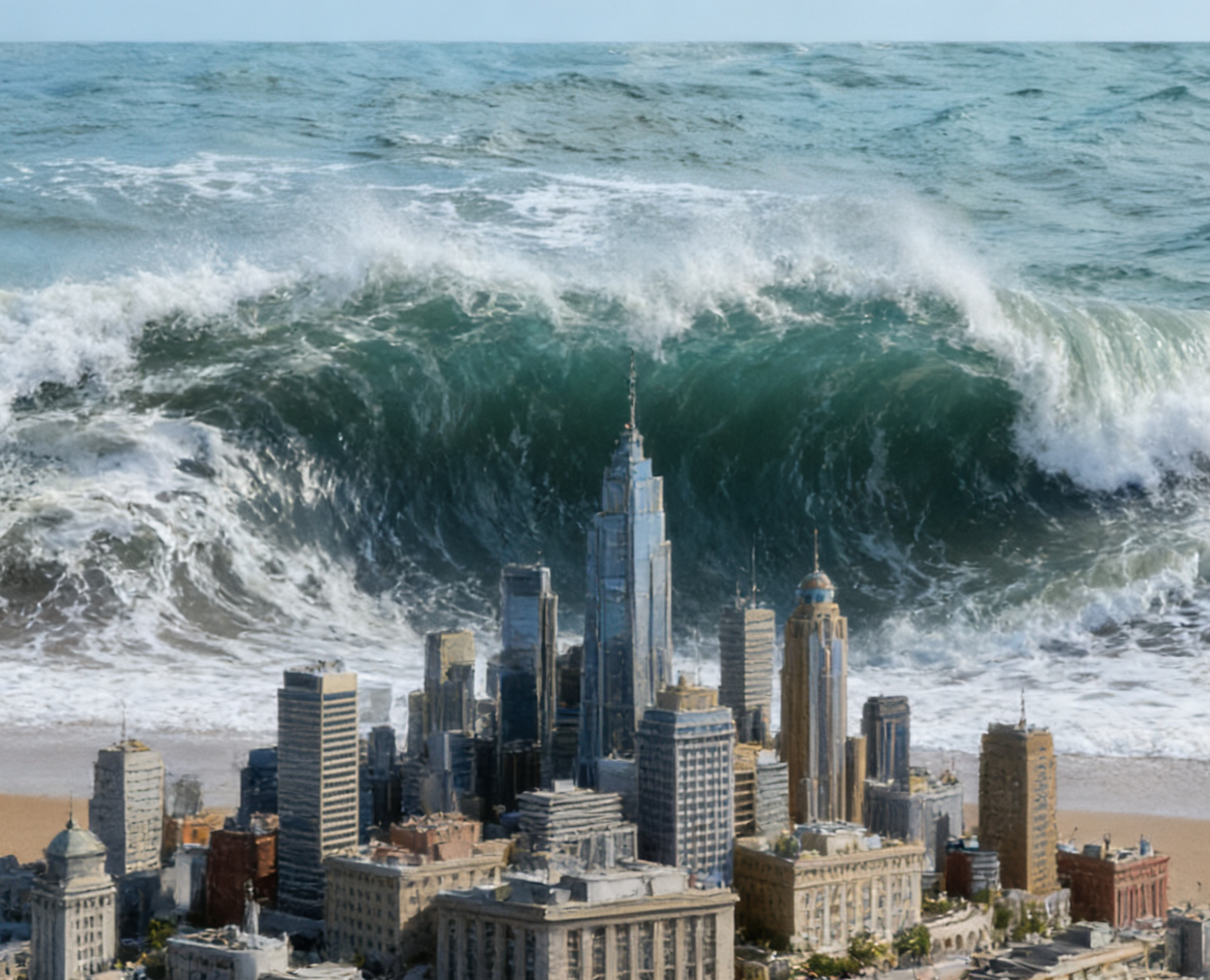 В Калифорнии был сильный дождь. Местные и туристы на берег почти не выходили, только какие-то упрямые деятели из Сиэтла вылезли на набережную, раз уж добрались. Этих энтузиастов даже на новостном канале показали.