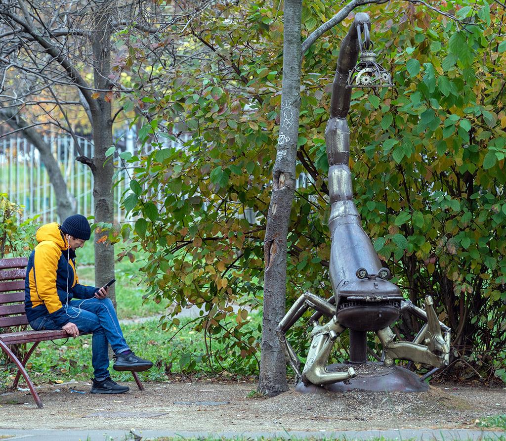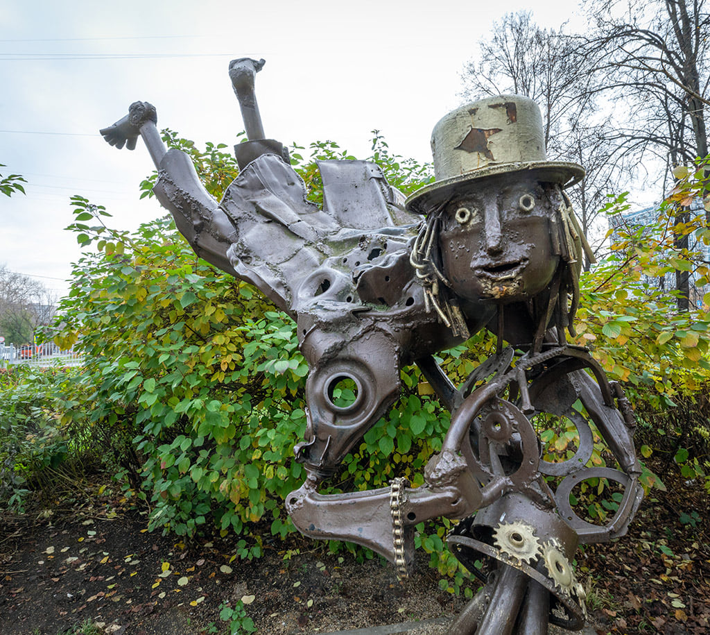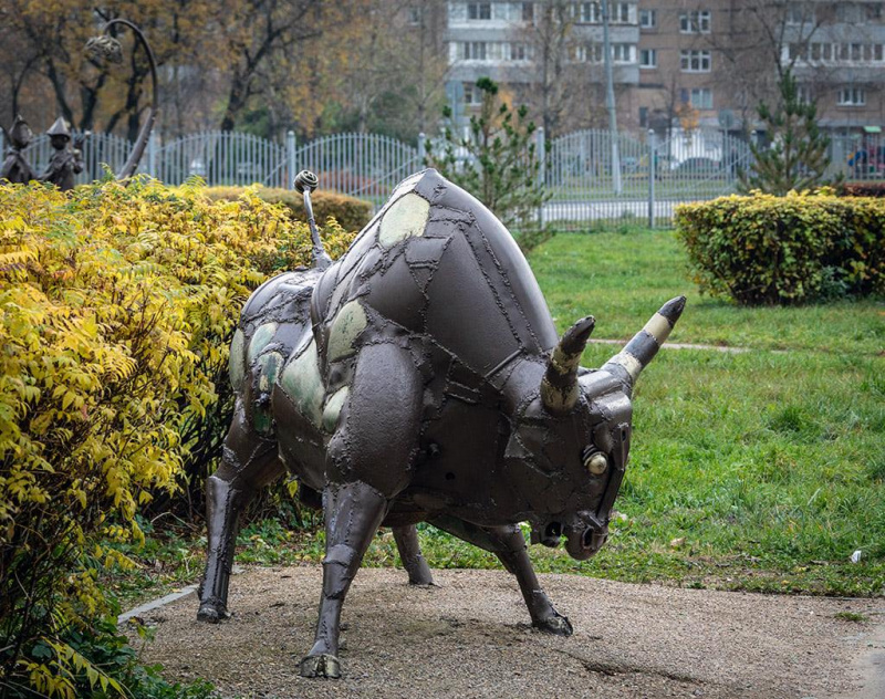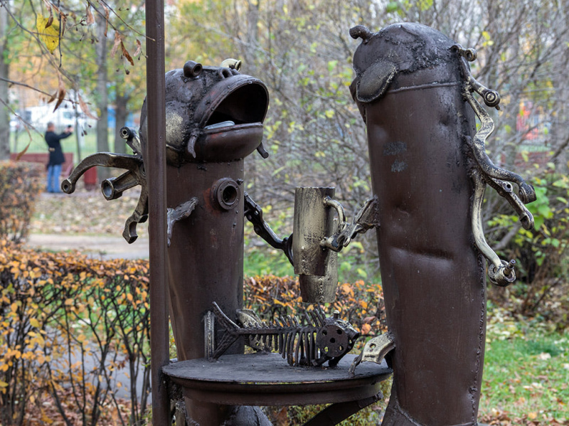 Этот совершенно прелестный (безо всяких шуток, мне очень понравилось) стритарт установлен в некоторых дворах московского района Свиблово. Скульптор Андрей Асерьянц.