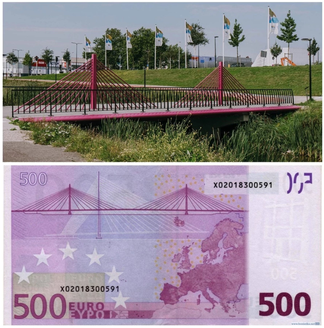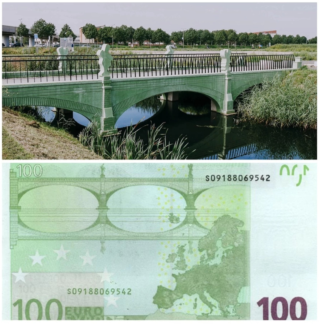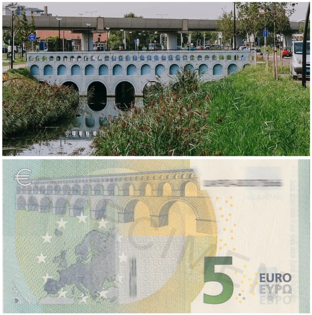 У Анны Монгайт в ТГ наткнулся на историю, о которой раньше не слышал. Много лет я пользовался банкнотами различных номиналов с евро, и как-то никогда не задумывался, что за мосты изображены на этих банкнотах. Думал, что это какие-то реально существующие мосты.