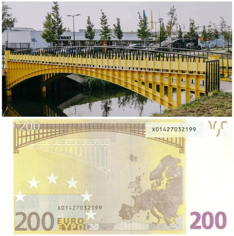 Однако первоначально никаких таких мостов не существовало. В 2002 году Европейский центральный банк начал разрабатывать дизайн евро, на купюрах было решено изобразить какие-то мосты - в качестве символа связи между странами ЕС.