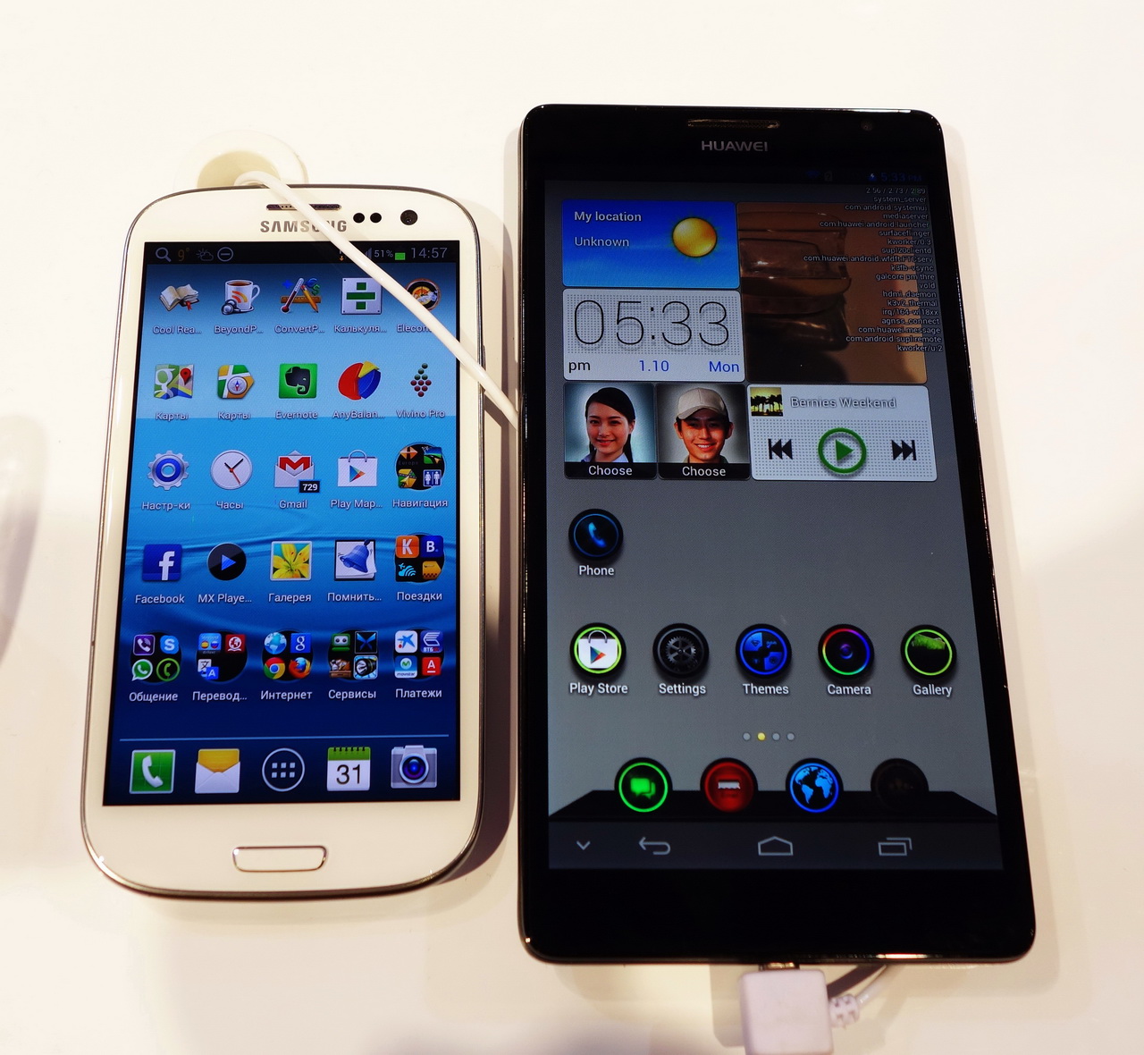 У них же должна быть примерно одинаковая диагональ, а Хуавей на фото выглядит значительно крупнее.