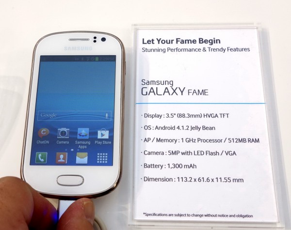Однако в Samsung не все увлекаются гигантоманией. Линейку телевизор-смартфон было решено продолжить в сторону спичечных коробков. Вот новая моделька Galaxy Fame - 3,5".