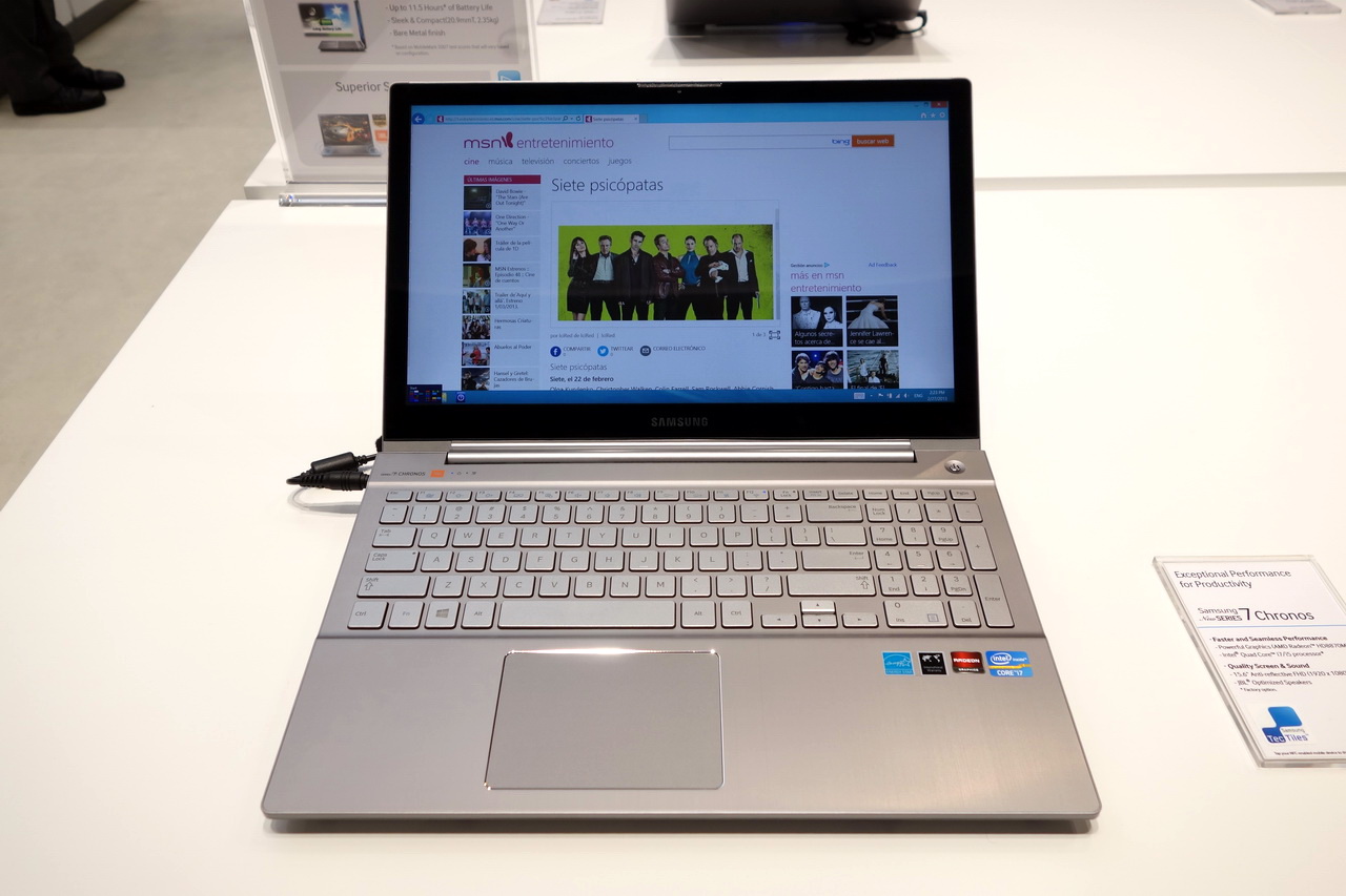 Ноутов было очень мало, но показали новую 7-ю серию - Samsung 7 Chronos. Процессор Intel i5 или i7, графика AMD Radeon HD8870M, дисплей 15,6" FullHD.
