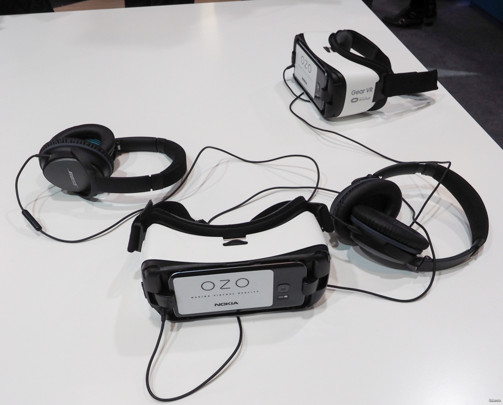 Nokia демонстрировала какое-то свое приложение для Gear VR. Вообще свои очки виртуальной реальности или свои приложения для тех же Gear VR показывали практически на каждом стенде каждой крупной компании. Напомню, что очки виртуальной реальности представляют собой держалку для смартфона и две линзы. В самом продвинутом варианте есть возможность подстройки диоптрий линз и какая-нибудь кнопка, которая что-то там вызывает в приложении. Технология эта существует давно, показывают это все каждый год, качество изображения там совершенно ужасное плюс где-то через 3-5 минут использования таких очков у многих пользователей начинает сильно болеть голова. (У меня Gear VR лежат в шкафу так и не распакованные с прошлого MWC.)