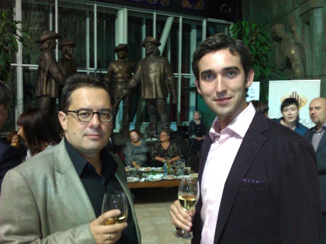 Как элегантно держит бокал Алекс, и как неуклюже его сосед...