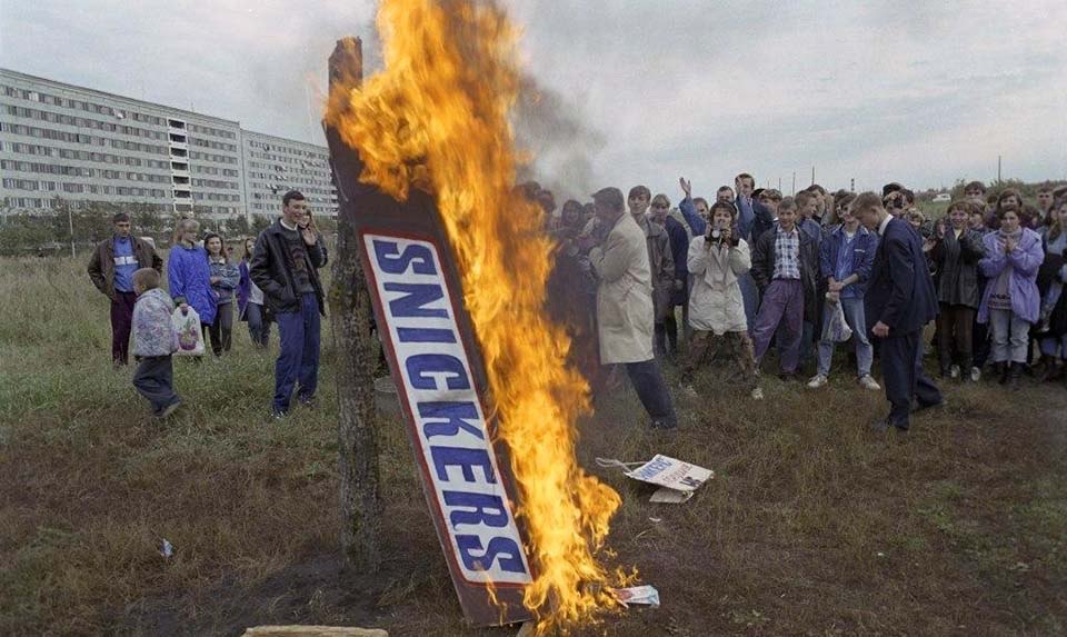 чтобы последующим превращением оных в дерьмо продемонстрировать истинный уровень презрения к западным продуктам.