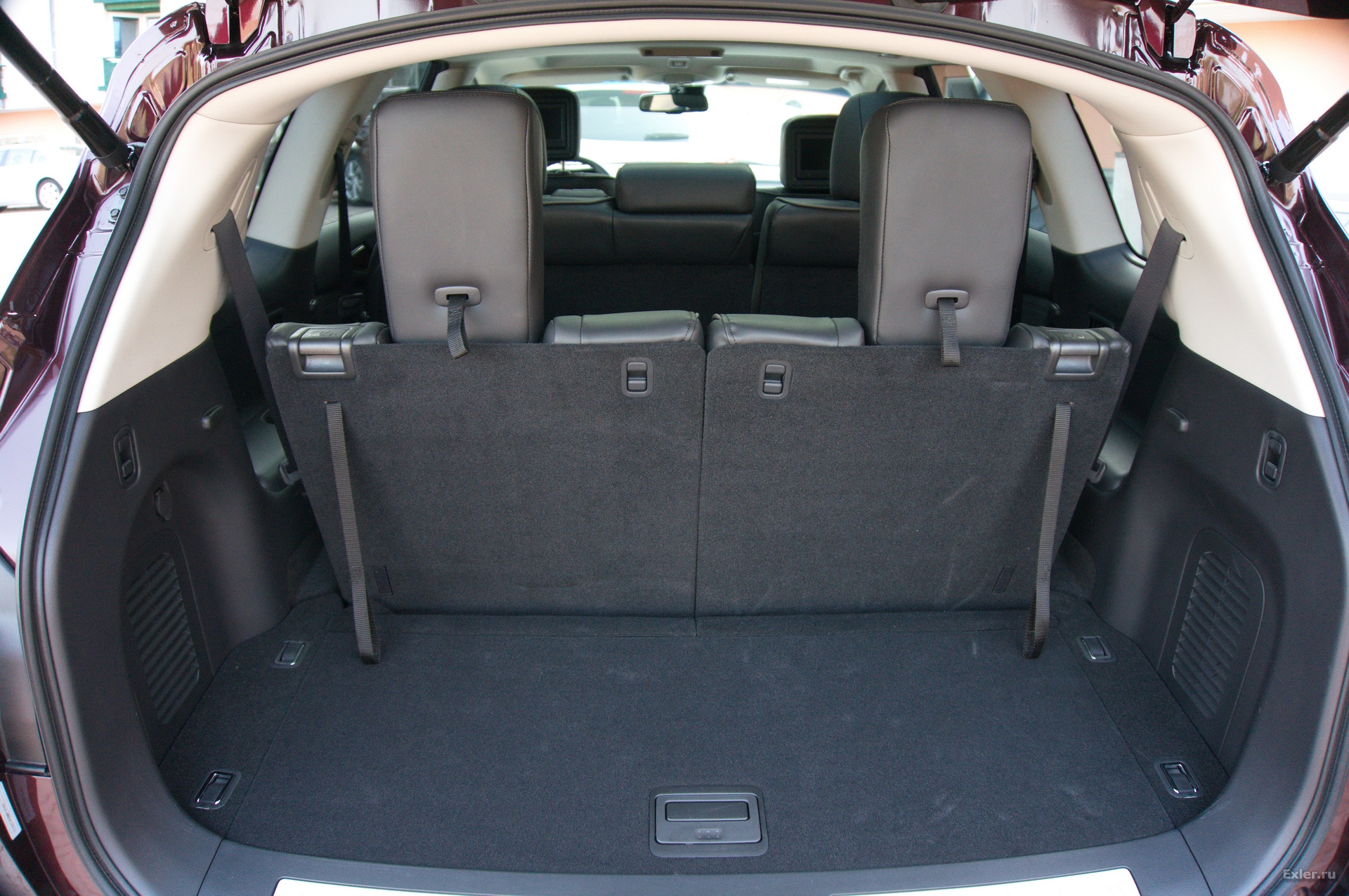 Довольно сносный багажник при 3-м ряде - в QX56 при 3-м ряде сидений багажника, можно сказать, нет.