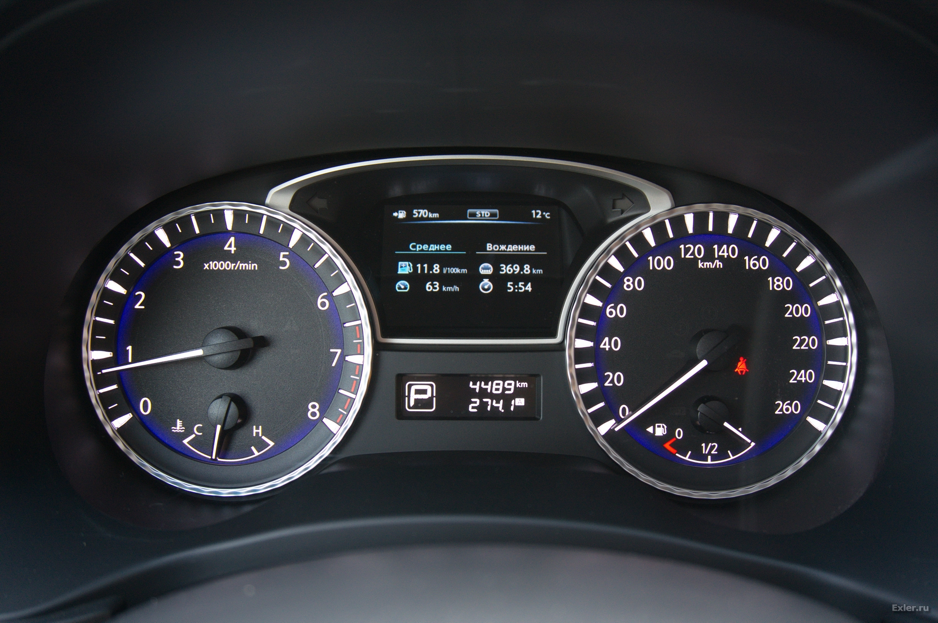 На передней водительской панели - традиционные тахометр со спидометром, на дисплее между ними - различная справочная информация с компьютера.