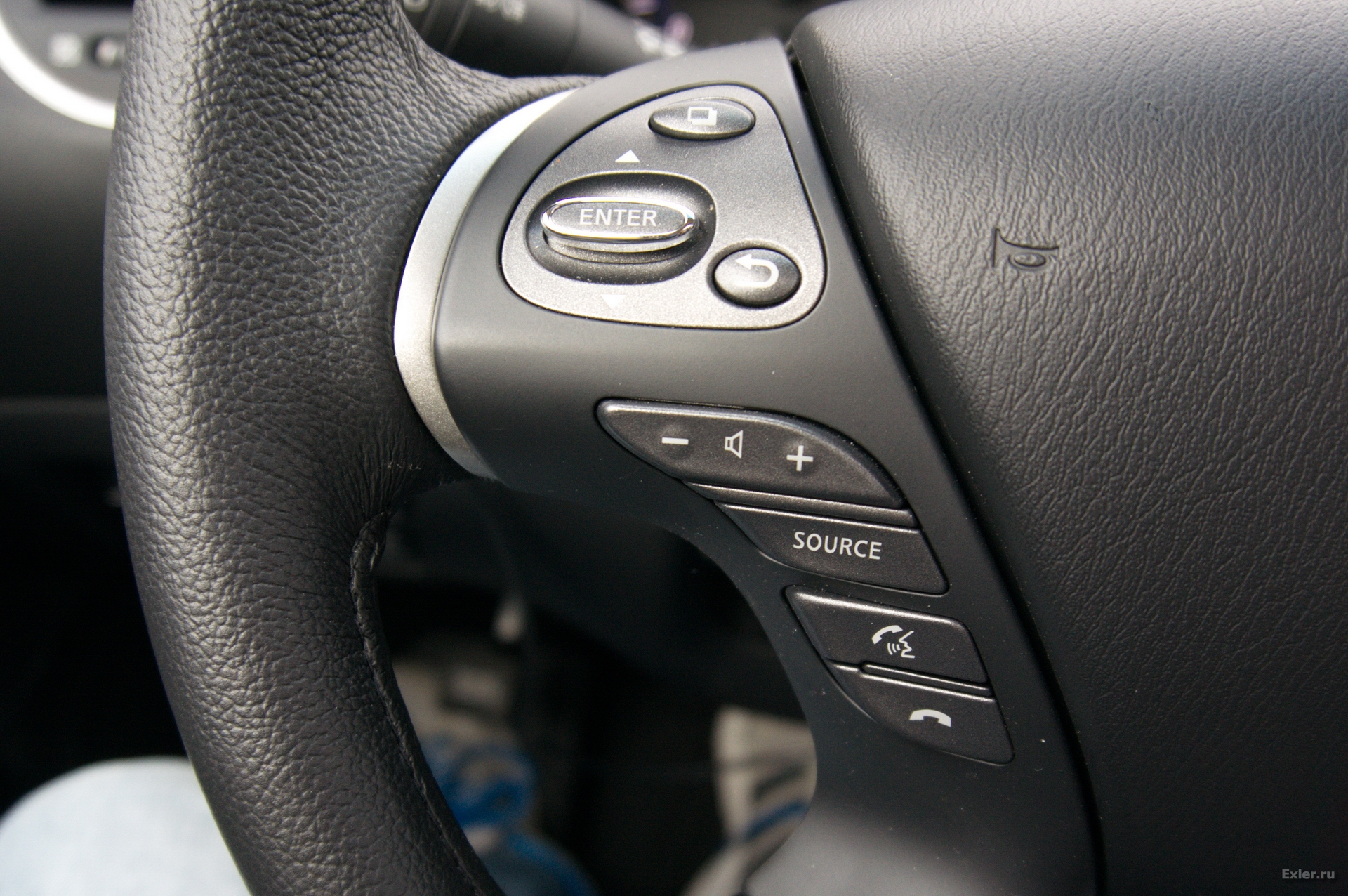 Слева на руле - качалка курсоров вверх-вниз и клавиша Enter, кнопки меню и возврат, регулировка громкости, выбор источника медиасигнала, снять трубку телефона, меню телефона.