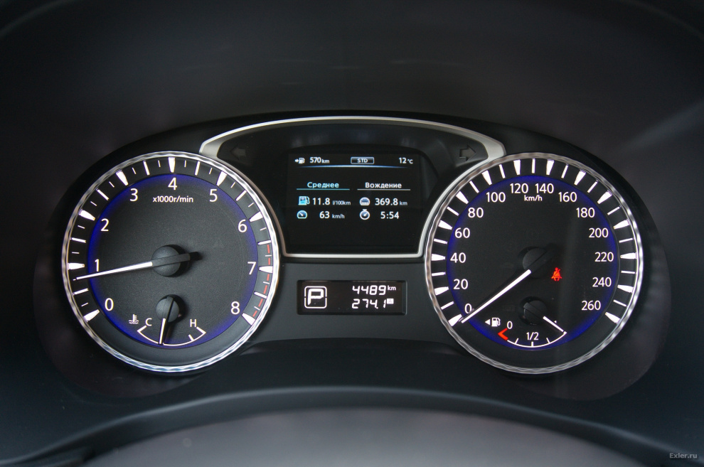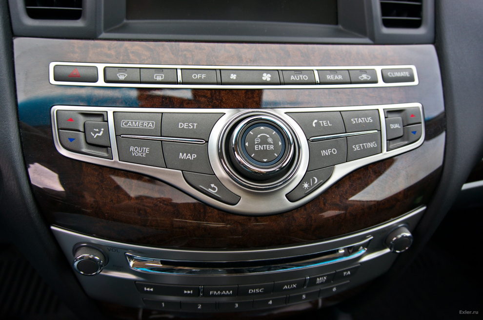 Подробными техническими характеристиками грузить не буду, вот самое основное. Движок: бензин, V-6 DOHC, 24v, 3498 ссм3, 262 л.с.; крутящий момент - 334 Нм. Емкость топливного бака - 74 л. Подвеска спереди - независимая Макферсон, сзади - независимая, многорычажная. Полная масса снаряженной машины - 2616 кг. Колеса нашей модели - 7.5J x 20, резина - 235/55R20. Коробка передач - СVT вариатор нового поколения Xtronic.