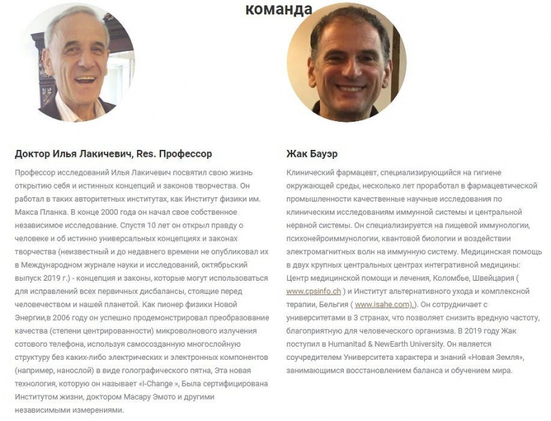 За появление 5GBioShield в продаже ответственность несут два человека – клинический фармацевт Жак Бауэр (Jacques Bauer) и профессор Илья Лакичевич (Ilija Lakicevic). Лакичевич, как утверждает сайт «проекта», работал в ряде крупных вузов всего мира, в том числе и в мюнхенском институте физики общества Макса Планка.