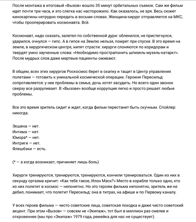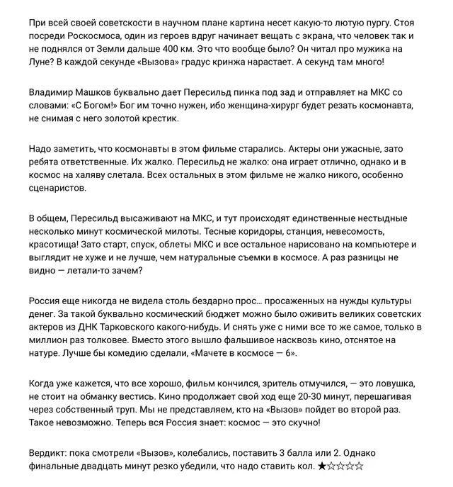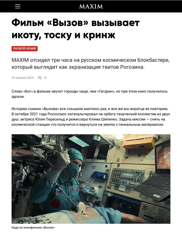 Журнал "Максим", как известно, оперативно удалил рецензию на первый фильм, снятый в космосе.