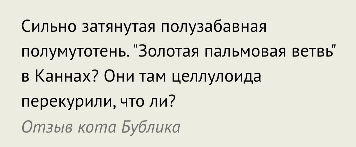 "Оскар" нивелировал сам себя. Полностью. Теперь, если у фильма есть "Оскар" - это вообще ничего не значит. Это может быть как и шедевр. Так и полная хуйня. Причем, хуйня - с большей вероятностью.