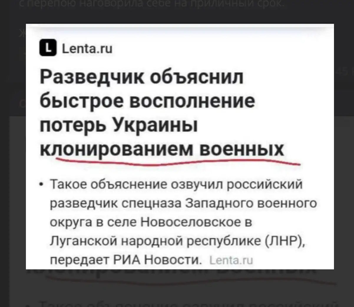 Мне удивительно, как россияне еще держутся против настолько передовой армии мира, которая не только клонирует военных, но еще и использует 4 года войны специальные батальоны боевые комаров. Наверное вооруженных лазерным и плазменным оружием и мономолекулярными жалами.