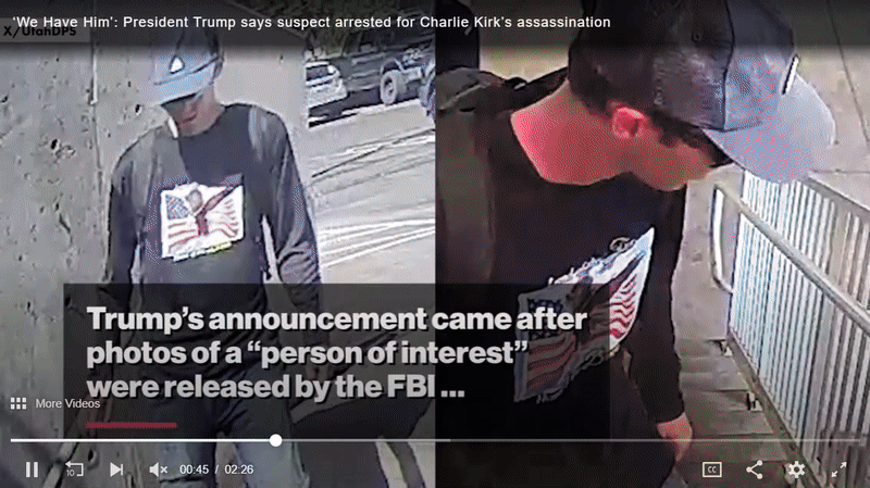 Президент Трамп объявил в пятницу утром, что подозреваемый в убийстве Чарли Кирка был сдан властям его отцом. Подозреваемым оказался Тайлер Робинсон, 22-летний студент из Юты, который был «полон ненависти».
