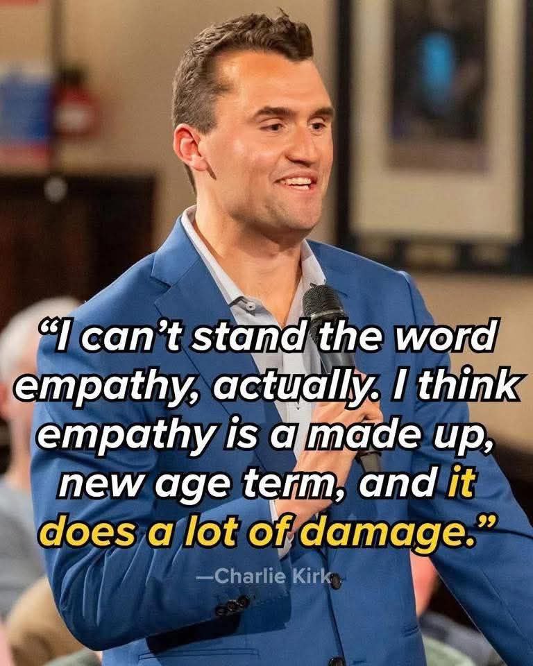 Вы думаете, что говорите о взглядах Чарли Кирка или ужасе политического убийства как такового, но собеседник ваш уже прочитал в NYT, что Кирк был трампистом, поэтому он точно знает, что Кирка не должно быть жалко, а кому жалко, тот сам трампист, а хуже трамписта только Гитлер (в крайнем случае Путин).