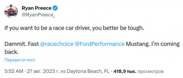 Гонщик уже опубликовал пост в Твиттере, который нынче известен как Х-сеть Илона Маска.