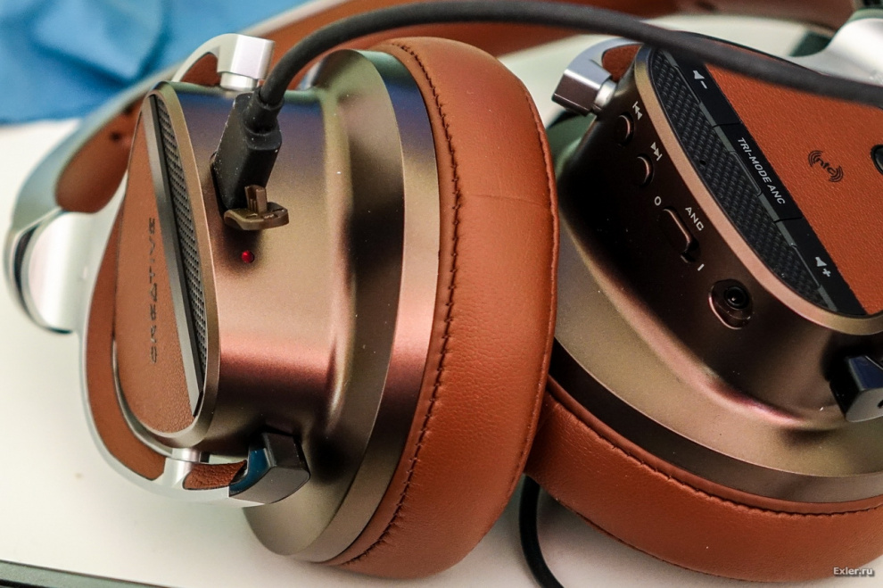 На нижней грани левой чашки - вход microUSB, через который заряжается аккумулятор.