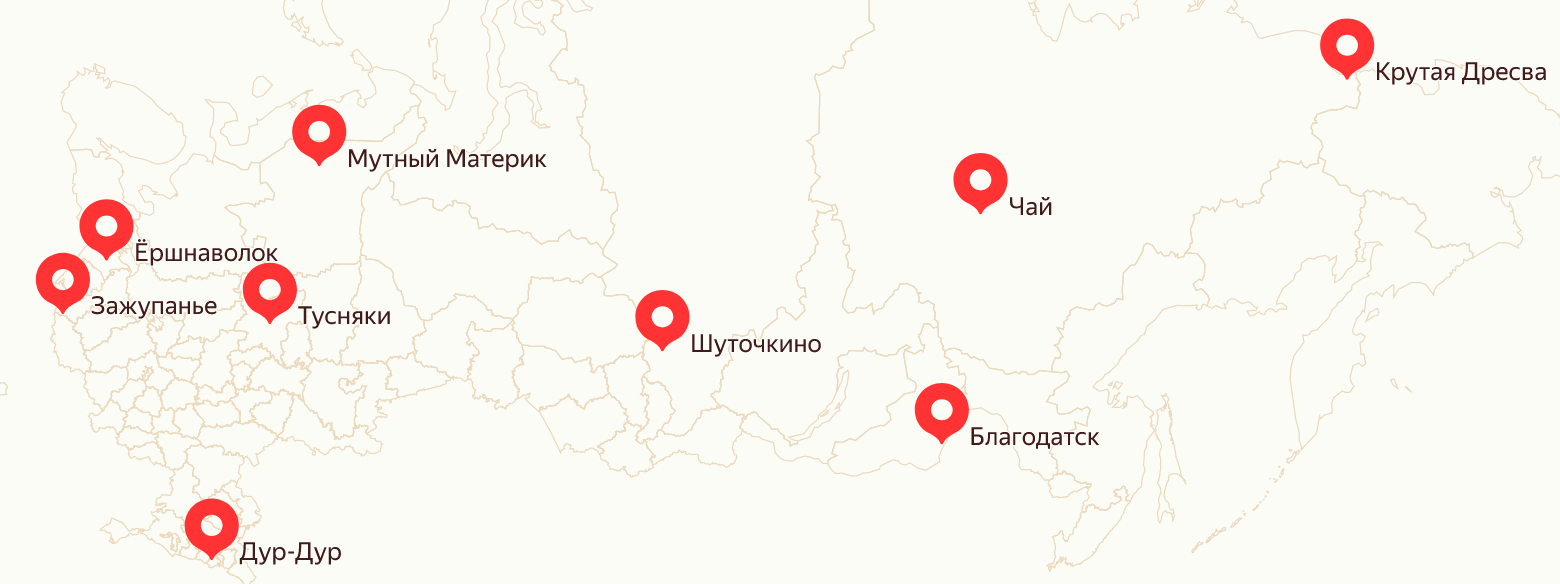 У Яндекса появился очень забавный проект - "Как называется это место? Населённые пункты на карте России".