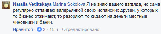 Если Ветлицкой не нравится Испания, пусть переедет в другое теплое место. Таких мест в Европе полно. Потом также будем вместе читать ее откровения.