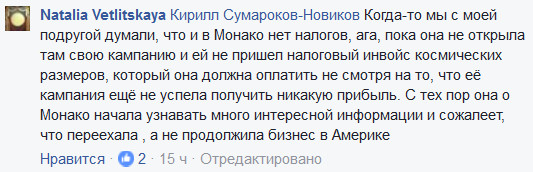 То есть ее подруга перевела бизнес и США в Монако, не узнав какие там условия ведения бизнеса и налоги???? такие люди существуют и ведут бизнес????