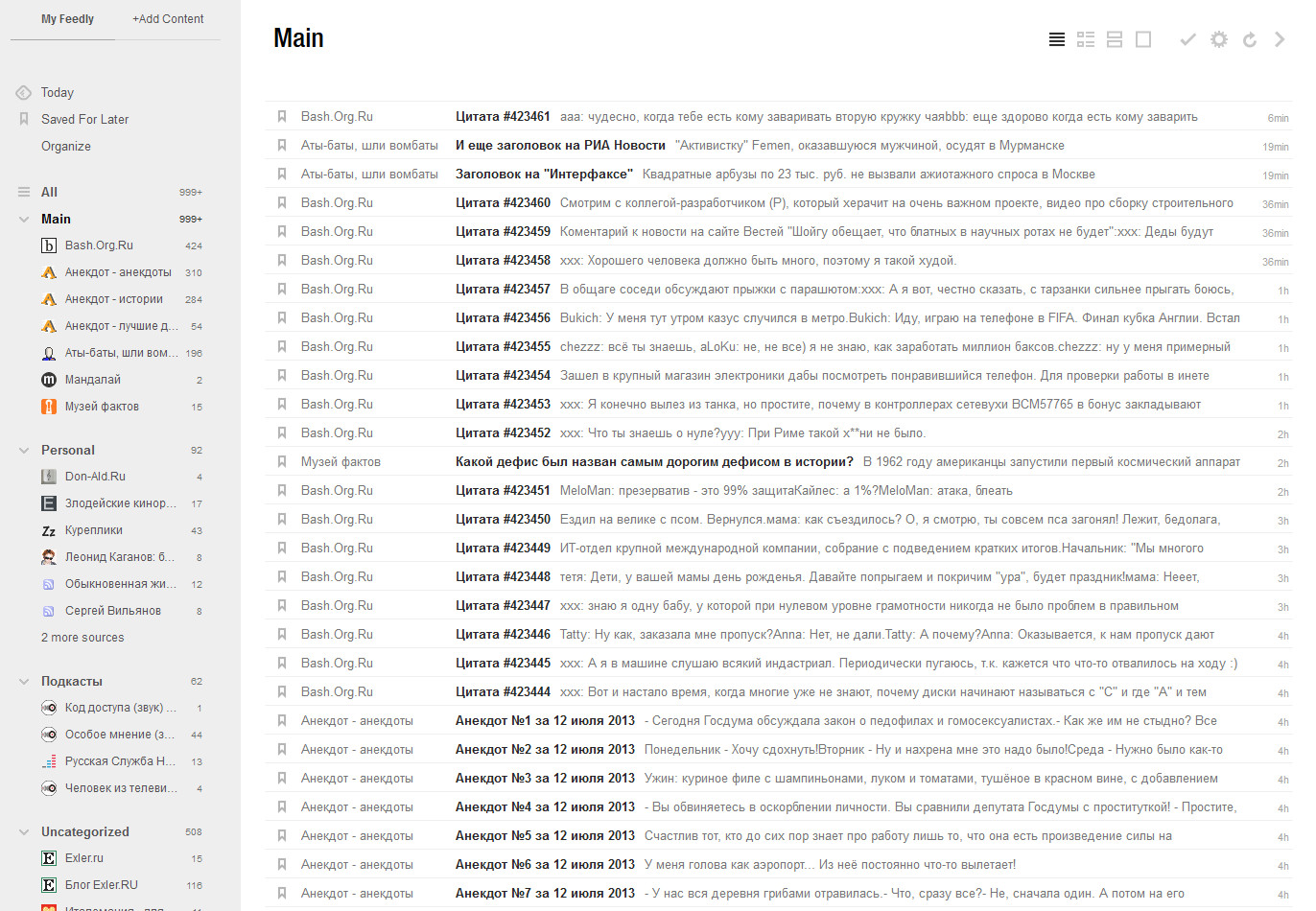 О. Спасибо за Feedly. Я переполз было на Netvibes, но он не такой удобный оказался - видео в RSS не показывал.