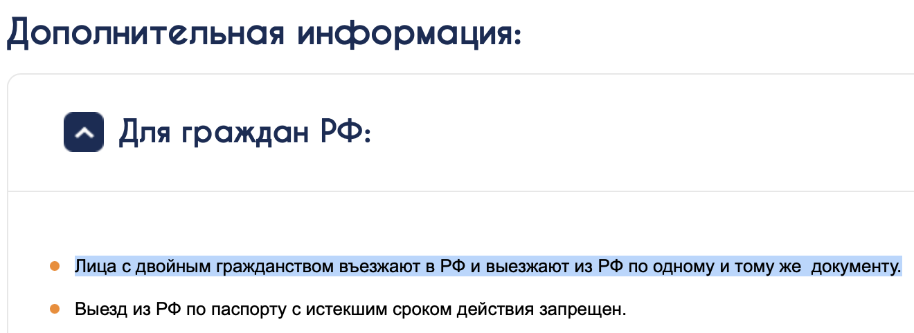 Кроме этого, история на Реддите имеет неточность. Фраза «Выезжают по одному паспорту, въезжают по российскому» — выглядит невозможной. Общее правило таково: человек, при пересечении государственной границы («на въезд» или «на выезд» — не важно), обязан предъявить паспорт этой страны, если ее гражданином он является. В противном случае он может показать паспорт любого гражданства, если у него их несколько.