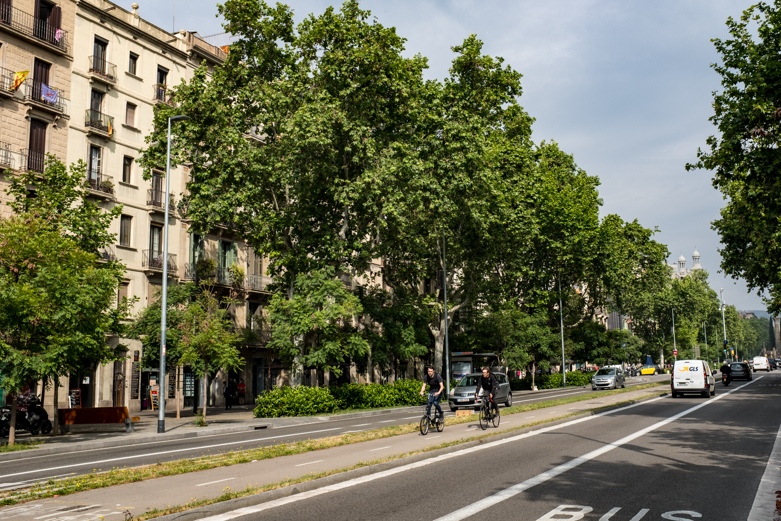 Проспект Сан Джоан. Ровно посреди проспекта - двухполосная дорожка для велосипедистов, которые там так и шныряют, так и шныряют.