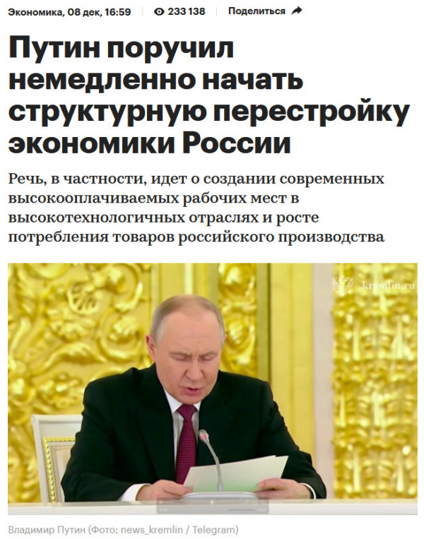 Всю эту бредятину он нес на заседании Совета по стратегическому развитию и национальным проектам. И заметьте, что в зале никто не заржал, все удержались. Профи.