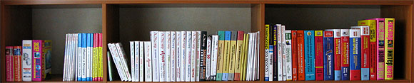 На двух полках уже не помещаются - теперь на трёх. И это не все - не хватает где-то пяти изданий.