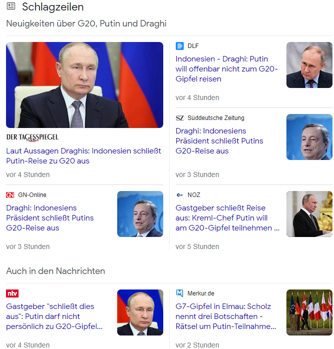 Но сегодня интрига разрешилась: Путина на Бали все же не пустят. Премьер-министр Италии Марио Драги заявил журналистам, что власти Индонезии не позволят Путину поучаствовать в саммите 15-16 ноября: «Джоко Видодо категорически исключил участие президента России в "Двадцатке", Путин не приедет», – сказал Драги на пресс-конференции по завершении саммита «Семерки».