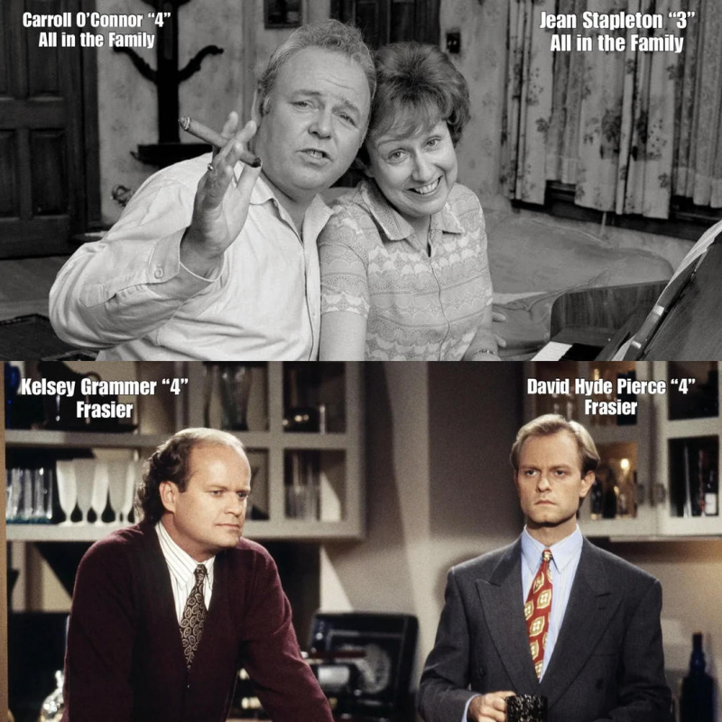 Любопытная подборка: актеры и актрисы, получившие несколько премий "Эмми" за одну и ту же роль в сериале. По убывающей - от 6 до 3 премий. Также сюда включены "Эмми", полученные за телевизионные шоу, а это не совсем то же самое, что и сериал. Поэтому среди сериалов абсолютная рекордсменка - несравненная Джулия Луи-Драйфес: 6 побед за сериал "Veep". Кстати, за "Сайнфелд" ее номинировали 7 раз, но получила она только одну премию.